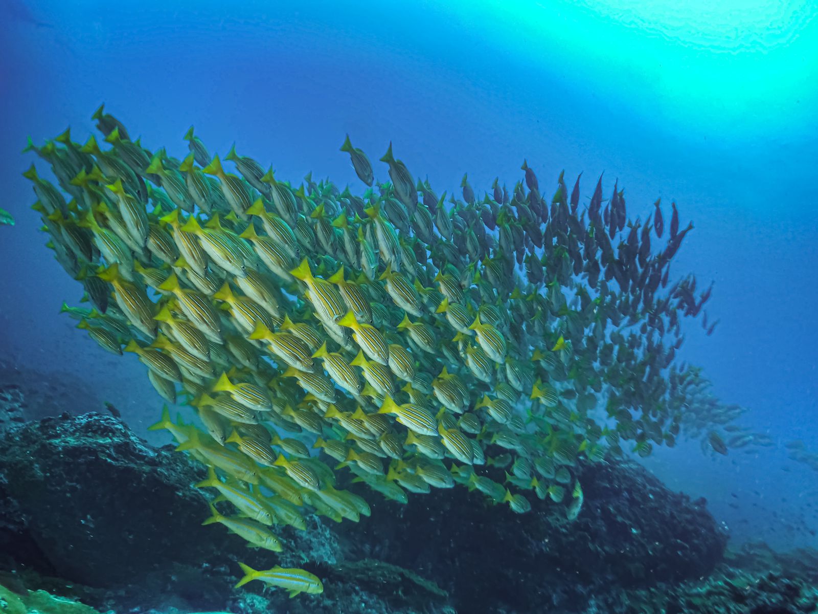 Malpelo słynie z niespotykanej koncentracji życia oceanicznego – to królestwo rekinów młotów, silvertipów, galapagosów i potężnych ławic pelagicznych ryb. Spotkania z ogromnymi mantami, delfinami, tuńczykami czy rekinami wielorybimi są tutaj niemal codziennością. To prawdziwy raj dla zaawansowanych nurków spragnionych silnych emocji, głębokich nurkowań i eksploracji nietkniętej natury.