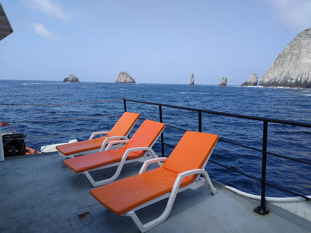 Rozpoczynamy rejs na SFF Malpelo – pełnomorska wyprawa przez wody Oceanu Spokojnego potrwa około 30 godzin. To czas na odpoczynek, zapoznanie się z załogą i innymi uczestnikami, a także szczegółowe omówienie zasad bezpieczeństwa i planu nurkowań. Na pokładzie będzie można skorzystać z wygodnych przestrzeni wspólnych, zrelaksować się na górnym pokładzie i cieszyć się widokiem otwartego oceanu.