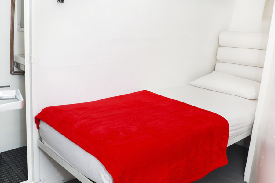 Poza najwyższymi standardami bezpieczeństwa oferujemy naszym gościom to, co na statku jest najbardziej pożądane – prywatność. Wszystkie kabiny są prywatne, z łazienką en-suite oraz indywidualnie sterowaną klimatyzacją.