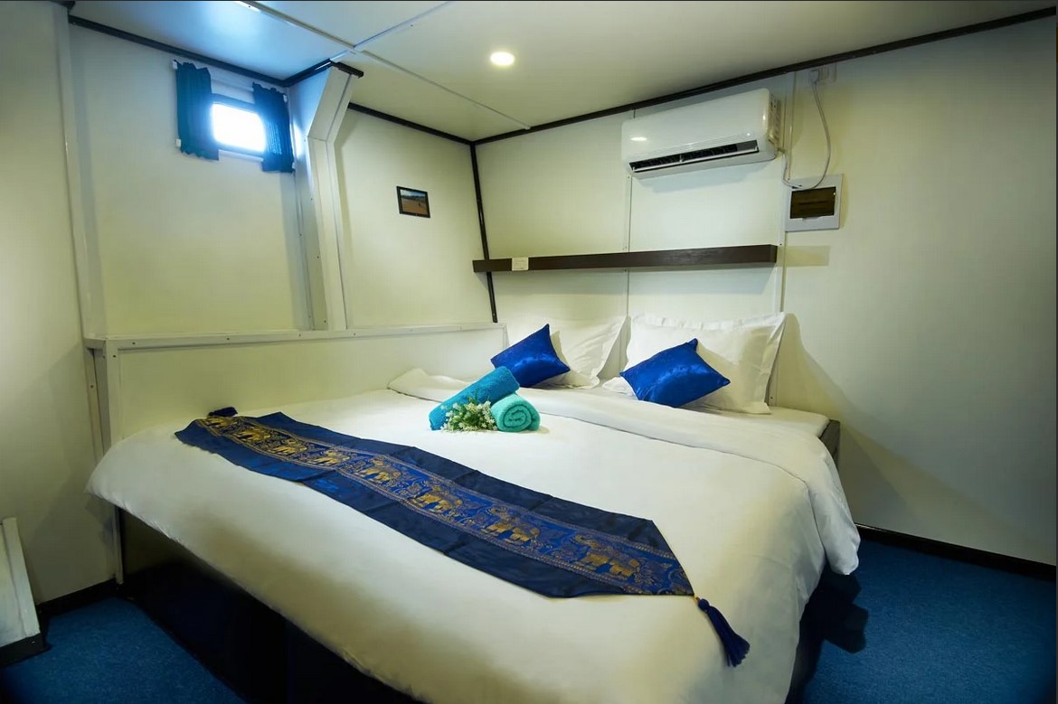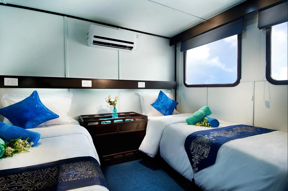 M/Y Galapagos Master oferuje miejsca w 8 dwuosobowych, luksusowych kabinach położonych na niższym pokładzie. Kabiny posiadają indywidualnie regulowaną klimatyzację, prywatne łazienki z gorącą wodą i codziennie zmienianymi ręcznikami.