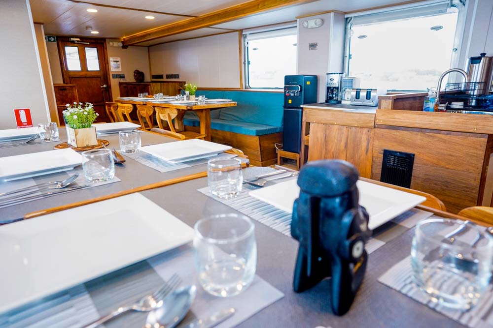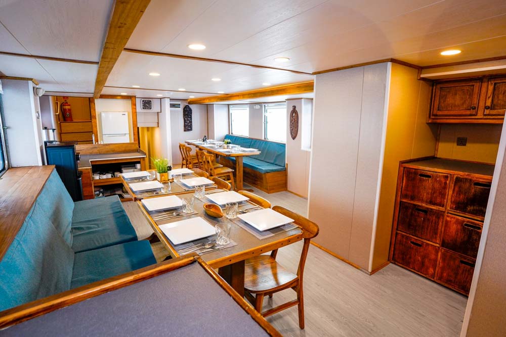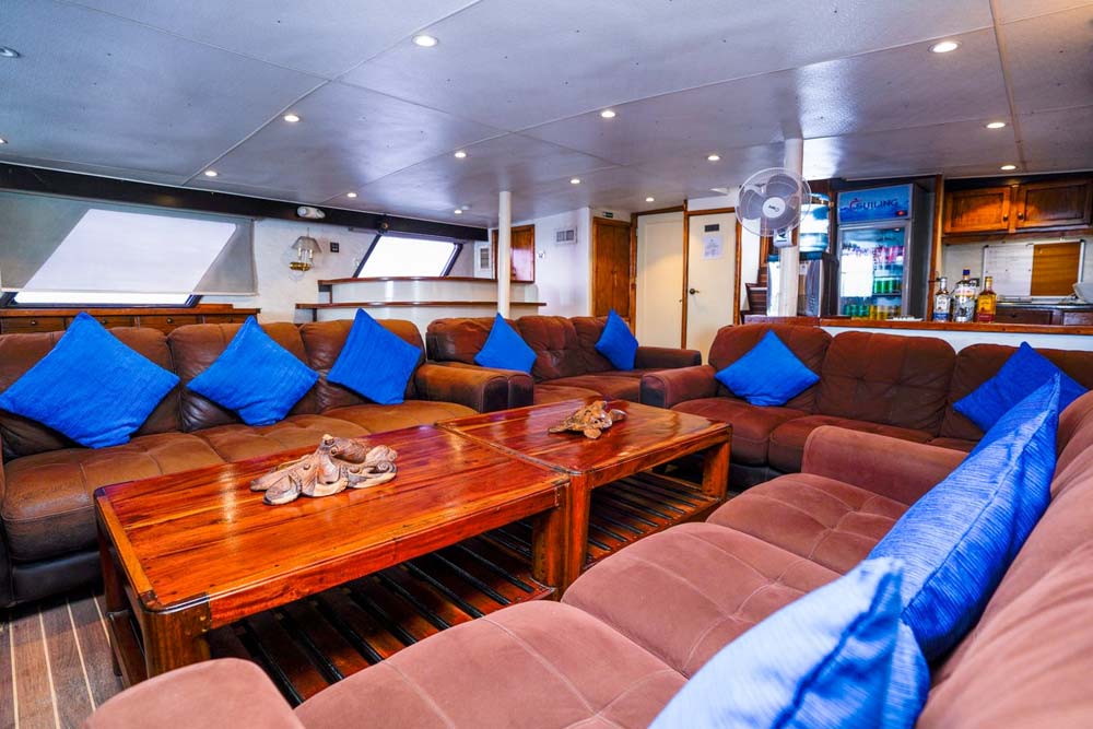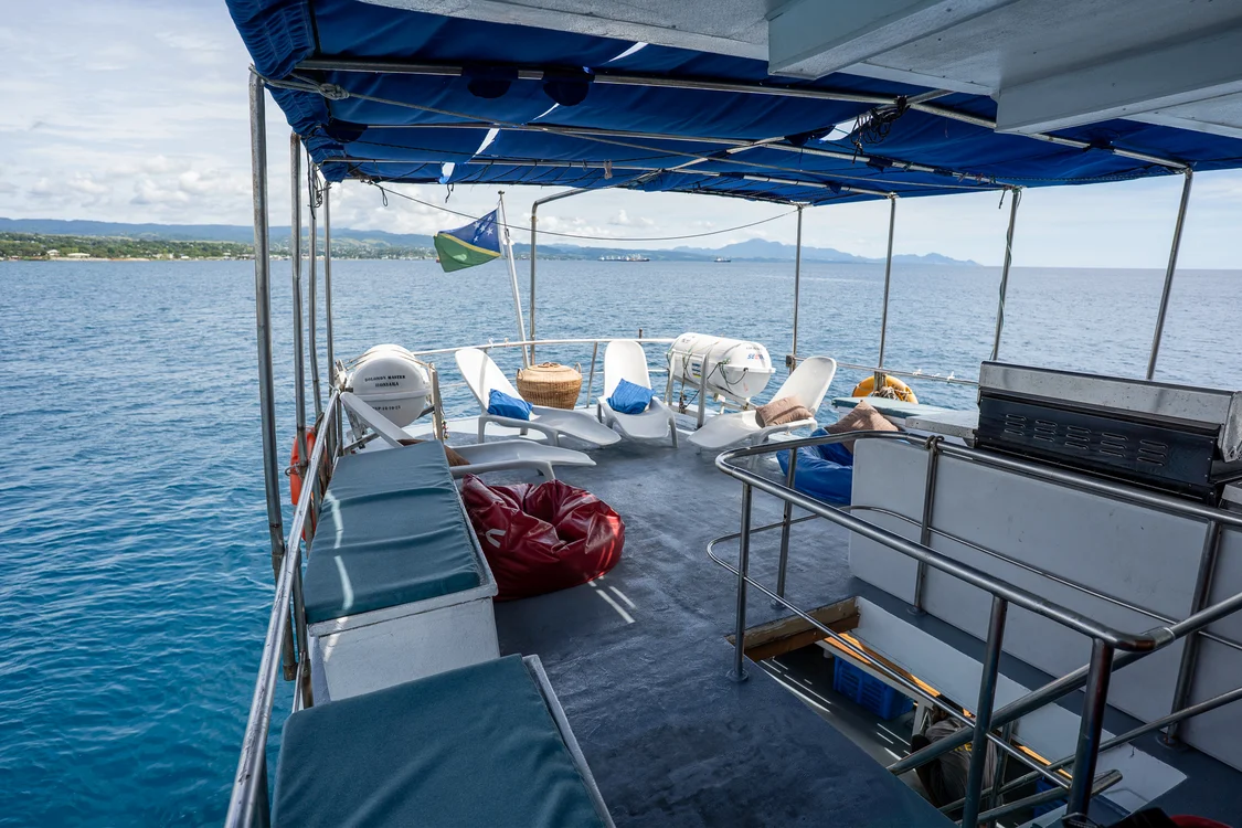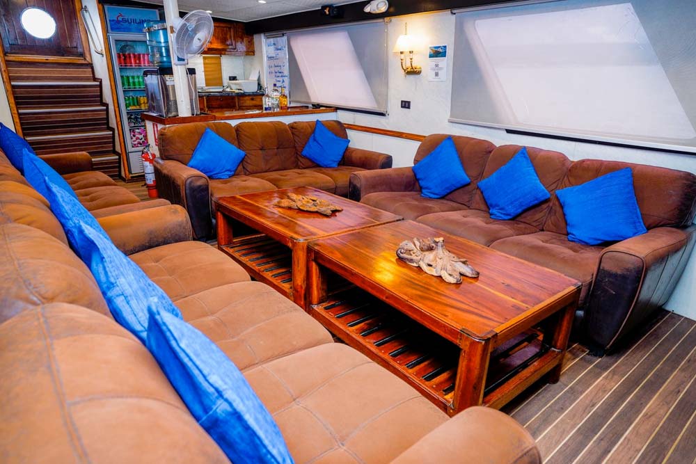 Na głównym pokładzie znajduje się komfortowa jadalnia, a także dedykowana strefa fotograficzna z licznymi punktami ładowania i miejscem do przechowywania sprzętu. Po dniu nurkowań można zrelaksować się w klimatyzowanym salonie z barem i ekranem do projekcji filmów lub zdjęć, bądź odpocząć w zacienionej strefie relaksu albo na przestronnym sundecku na górnym pokładzie, podziwiając widoki Wysp Salomona.